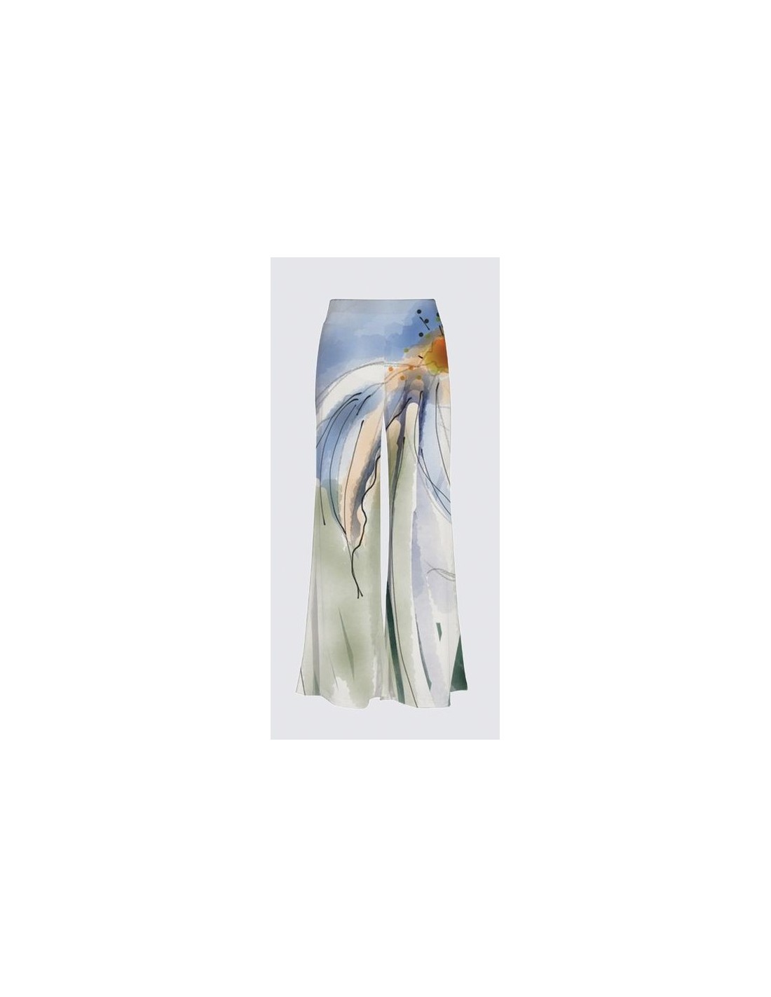 "Perlouse" by artist Christiane Lapointe. Comfortable palazzo pant that falls loosely over the body, made of premium ITY knit (95% polyester, 5% elastane). The inseam is 30" long with a high rise waist and wide cut leg. Machine wash in cold water on delicate cycle, hang dry.