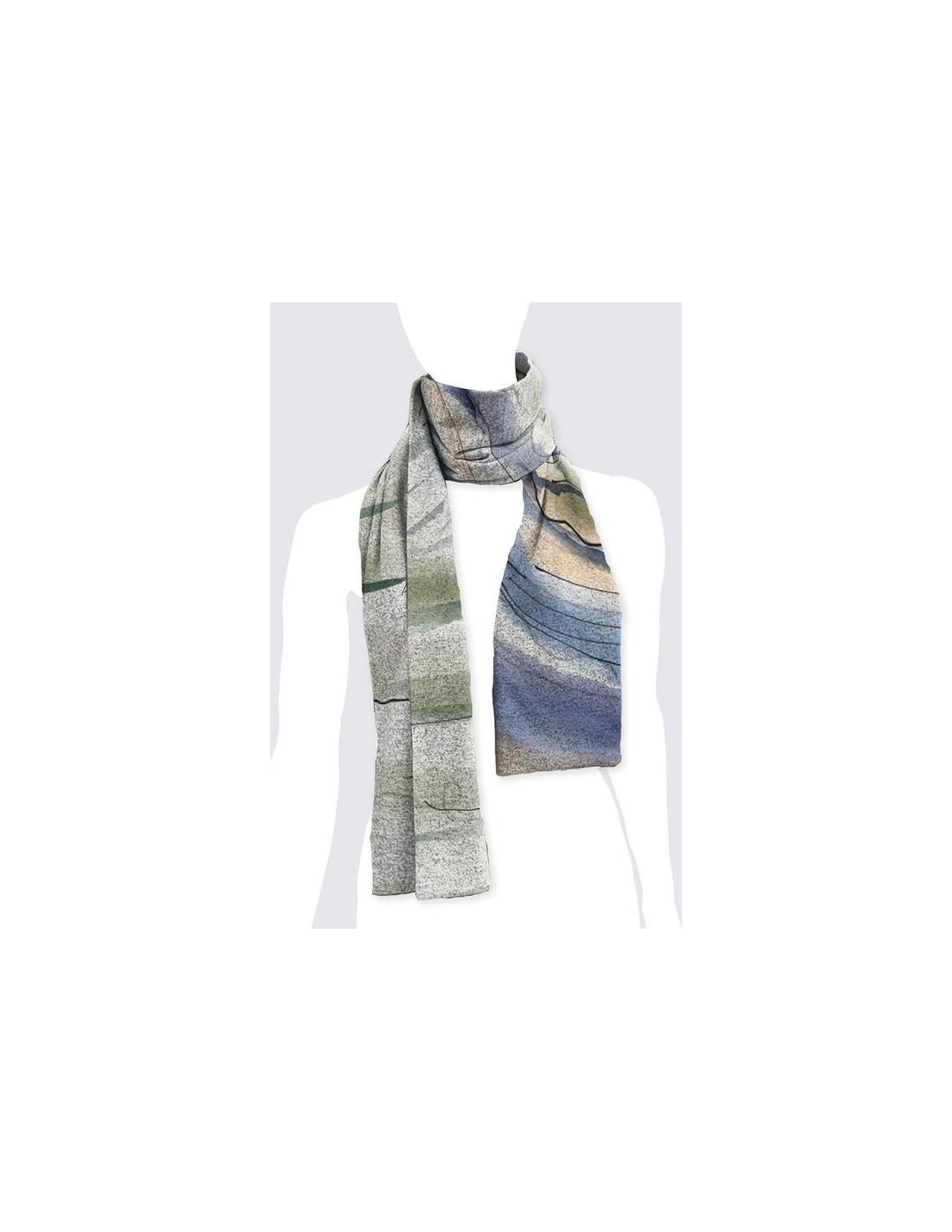 Foulards Foulard Aspen "Tranquillité" SCA02IM0F05A 65,00 $ "Tranquillité" par l'artiste Christiane Lapointe. Ce foulard mesure 17" x 65". Tricot très doux à base de gris chiné avec une finition bord merrow. Lavable à la machine à l'eau froide. Suspendre pour sécher. Fait au Québec, Canada. Ajouter au panier