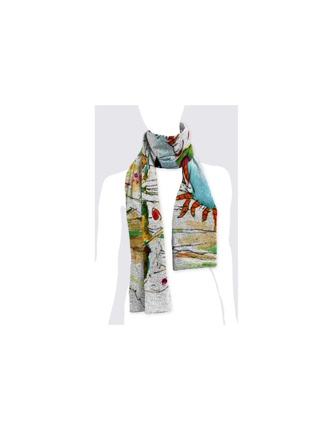 Foulards Foulard Aspen "Radiance" SCA02IM0F0LA 65,00 $ "Radiance" par l'artiste Christiane Lapointe. Ce foulard mesure 17" x 65". Tricot très doux à base de gris chiné avec une finition bord merrow. Lavable à la machine à l'eau froide. Suspendre pour sécher. Fait au Québec, Canada. Ajouter au panier