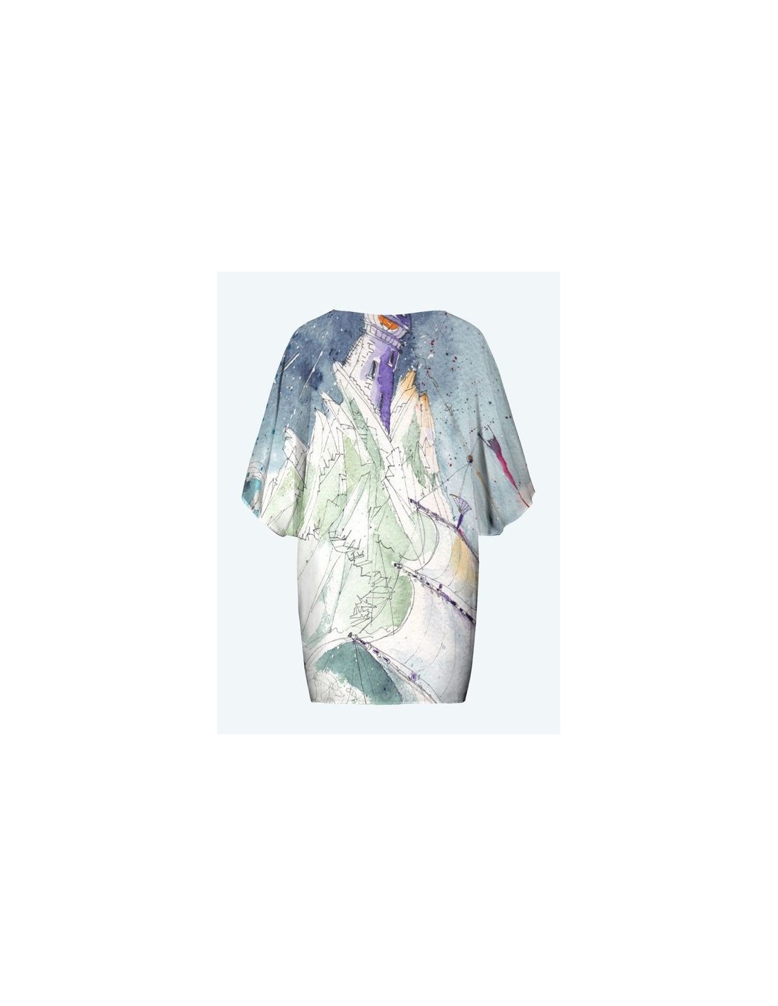 "Centrifuge" par l'artiste Christiane Lapointe. Kimono de longueur 29" et de largeur 24" avec une coupe ample. Le devant arrive à la mi-cuisse et les manches aux coudes.