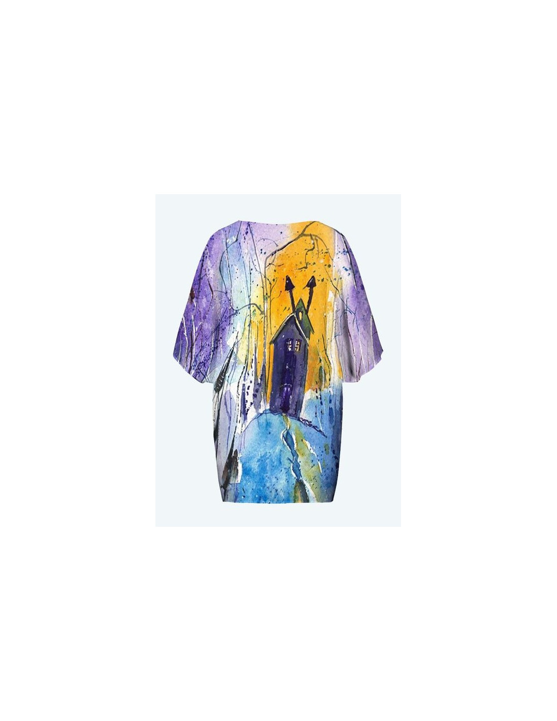 "Illusion" par l'artiste Christiane Lapointe. Kimono de longueur 29" et de largeur 24" avec une coupe ample. Le devant arrive à la mi-cuisse et les manches aux coudes.