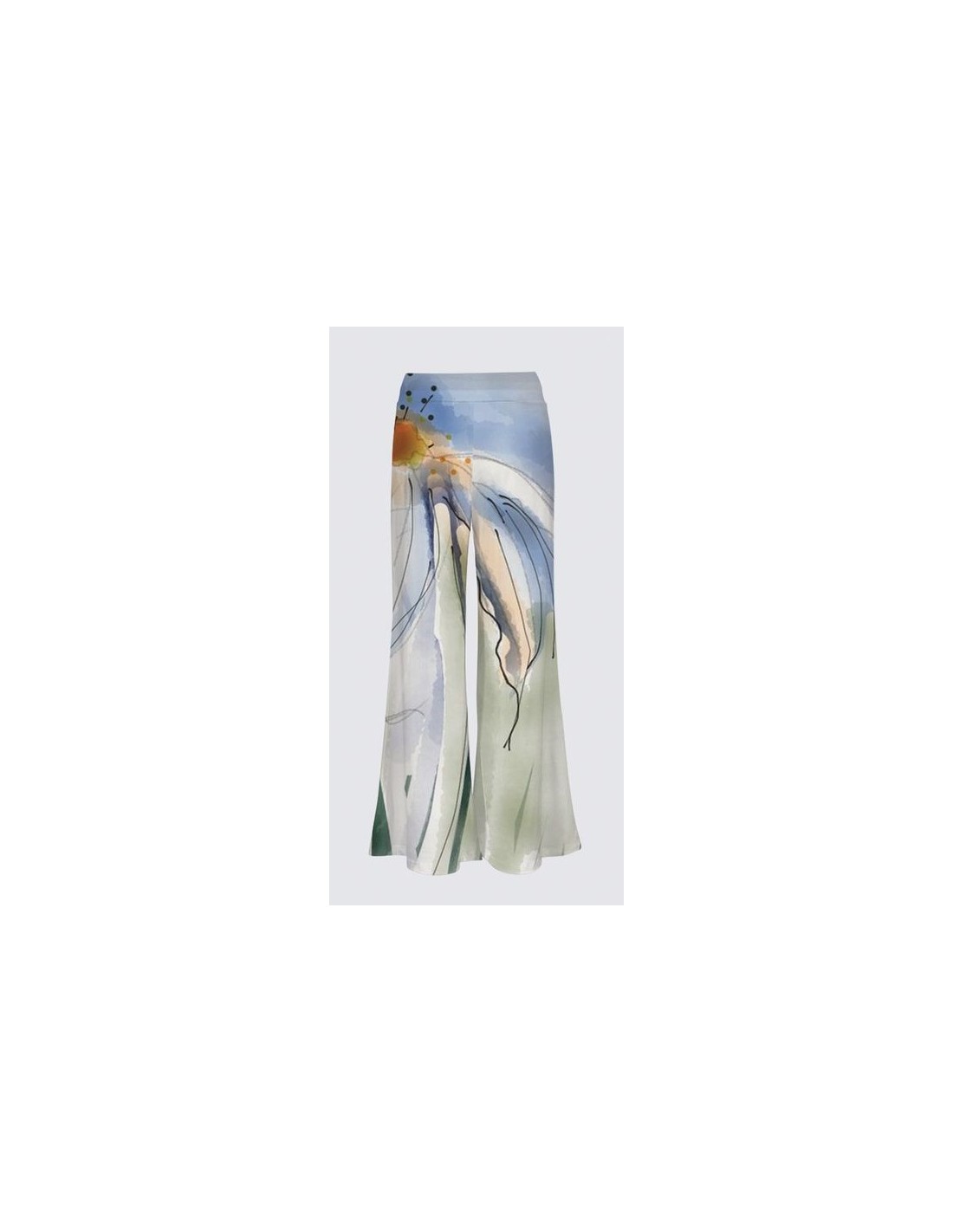 "Perlouse" par l'artiste Christiane Lapointe. Pantalon palazzo très confortable, fabriqué en tricot ITY de qualité supérieure (95% polyester, 5% élasthanne) avec entrejambe de 30" de longueur et une taille haute. Lavez à la machine au cycle délicat, séchez à plat.