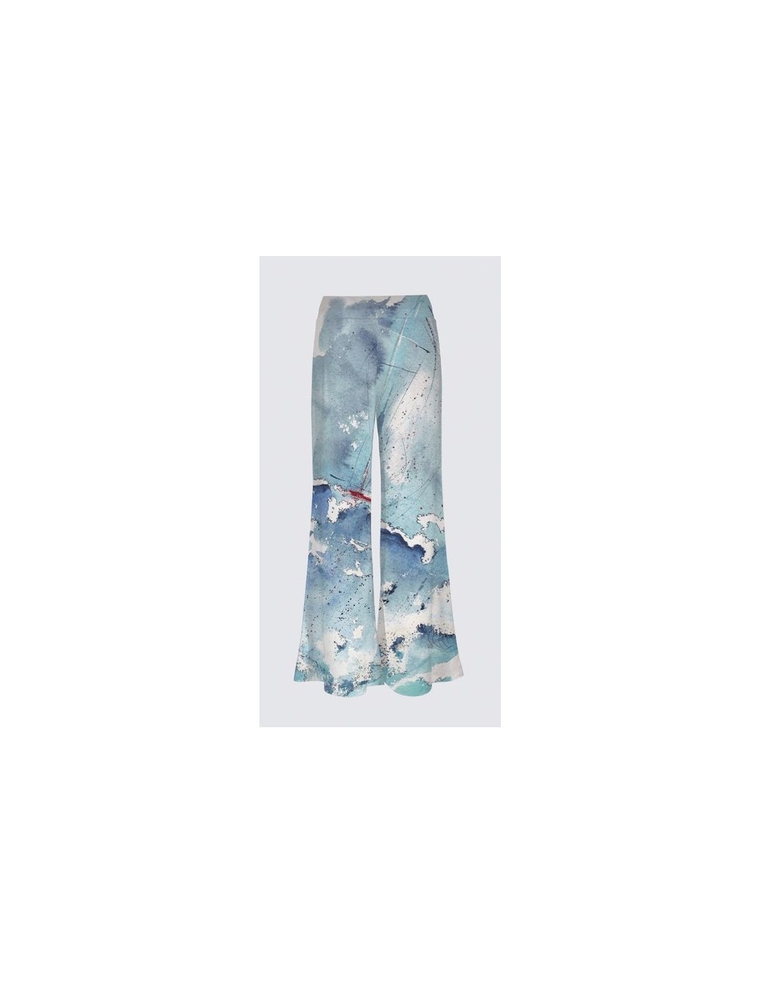 "Turbulence" par l'artiste Christiane Lapointe. Pantalon palazzo très confortable, fabriqué en tricot ITY de qualité supérieure (95% polyester, 5% élasthanne) avec entrejambe de 30" de longueur et une taille haute. Lavez à la machine au cycle délicat, séchez à plat.