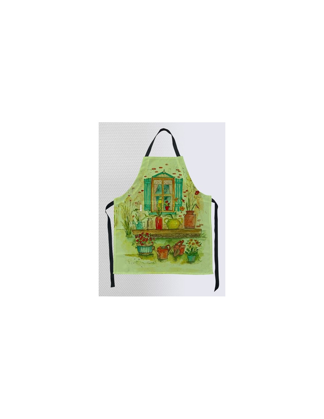 "Emergence" par l'artiste Christiane Lapointe. Tablier pour adulte de taille 21" x 36" en toile texturée (100% polyester) avec sangle ajustable, bretelles 100% coton noir et poche avant. Lavable à la machine à l'eau froide au cycle délicat.